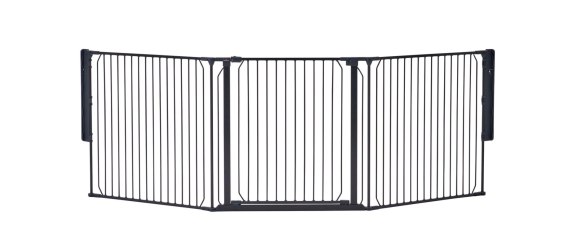 Bramka mocowana jest do ściany za pomocą solidnych wsporników. Każdy panel można regulować pod kątem, tworząc linię prostą, łagodny łuk lub asymetryczną formę. Model Carl X Wide obejmuje przestrzeń od 90 do 223 cm i idealnie sprawdza się wszędzie tam, gdzie potrzebujesz elastycznego zabezpieczenia - przy schodach, kominku lub otwartych przejściach.