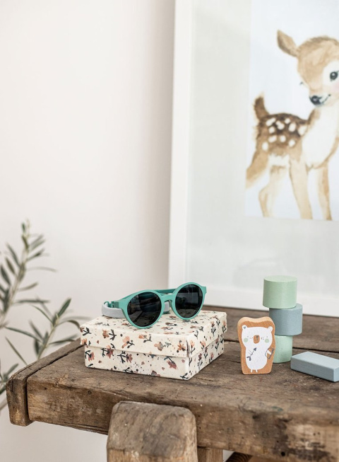 Okulary przeciwsłoneczne z kolekcji Happy francuskiej marki BEABA przeznaczone są dla dzieci powyżej 2. roku życia. Zaprojektowane z naciskiem na praktyczność, bezpieczeństwo i wygodę użytkowania, a przede wszystkim ochronę oczu malucha. Antypoślizgowe, zakrzywione ramiona nie uciskają głowy dziecka, są dobrze dopasowane i pozostają na miejscu, także podczas typowych dziecięcych aktywności. Profilowanie strefy nosa nawiązuje do stylu vintage, jest uniwersalne i wyjątkowo stabilne, a ponadto wraz ze strefą skroni wykonane zostało w technologii Fit z elastycznego, trwałego tworzywa, które dopasowuje się do kształtu twarzy. Szczególny, obły kształt rozbudowanych oprawek zabezpiecza oczy malucha przed promieniami słonecznymi wpadającymi również z boku. Specjalne, nietłukące się „szkiełka” w kolorze ciemnobrązowym to soczewki kategorii 3, która gwarantuje maksymalną, 100% ochronę przed promieniami UV. Nadają się do ekspozycji na słońce również na plaży czy w górach. Okulary posiadają regulowane zauszniki 360° oraz elastyczną opaskę, którą można w razie potrzeby zamocować na klik (dzięki silikonowym zaczepom) dla optymalnego komfortu.