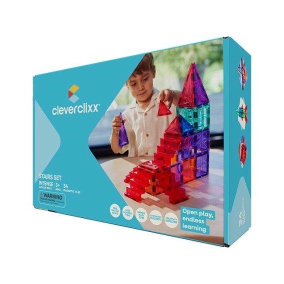 • Cleverclixx - Klocki magnetyczne ze schodami - Stairs Set Intense 34 el.