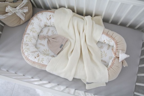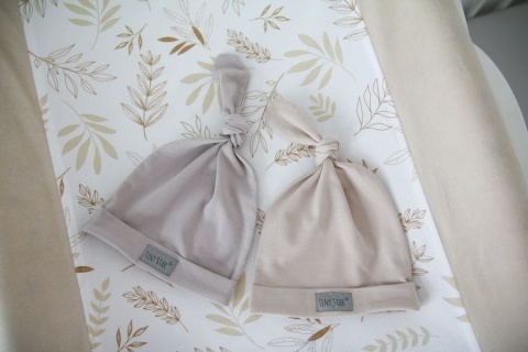 Śliczna czapeczka dla niemowlaka z supełkiem z tyłu. Możliwa regulacja długości dzięki supełkowi. Czapeczka uszyta z miękkiego i rozciągliwego jersayu, zapakowana w elegancki, ekologiczny kartonik.