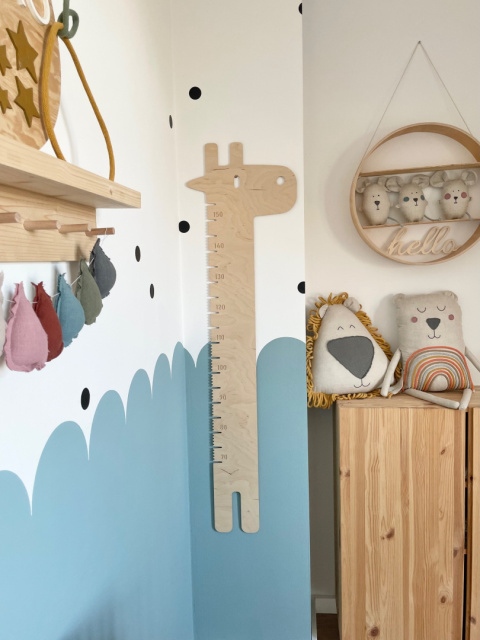 Drewniana miarka wzrostu - wykonana z 6mm sklejki liściastej o wymiarach 128,50 x 30 cm.