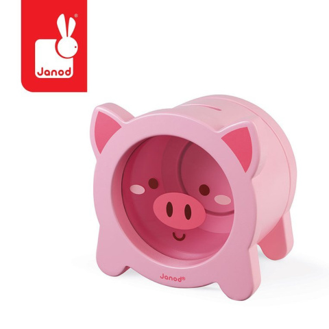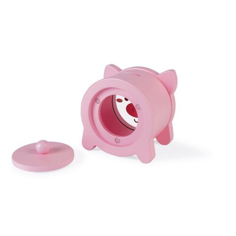 Drewniana skarbonka Świnka francuskiej marki JANOD to piękna i praktyczna dekoracja dziecięcego pokoju. Wyróżnia ją niebanalny design: kształt tuby, okrągły otwierany tył z zabawnym ogonkiem, zamykany na magnes i przezroczysta mordka, dzięki której dziecko widzi swoje oszczędności. Na grzbiecie zwierzątka znajduje się otwór na monety. Świnka jest różowa, ma ciemniejsze uszka i szeroko rozstawione łapy, dzięki czemu jest stabilna. To w pełni bezpieczne i wyjątkowo estetyczne akcesorium, które doda uroku przestrzeni malucha, a przy tym będzie świetnym początkiem nauki oszczędzania. Skarbonka zapakowana jest w stylowe kartonowe pudełko, idealnie nadaje się na prezent.