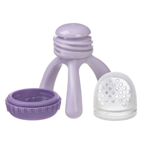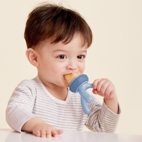 Bezpieczny i higieniczny gryzak silikonowy do podawania dziecku jedzenia (miękkich owoców i warzyw) do samodzielnego spożywania. Dla ułatwienia wyposażony w "trzy nóżki" będące stabilną podstawą a jednocześnie poręczmy uchwytem.