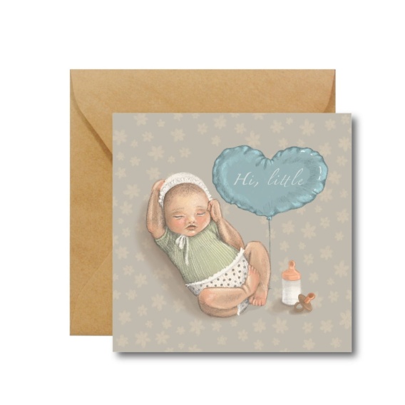 HI LITTLE KARTKA NA NARODZINY | NOWORODEK Z BALONEM