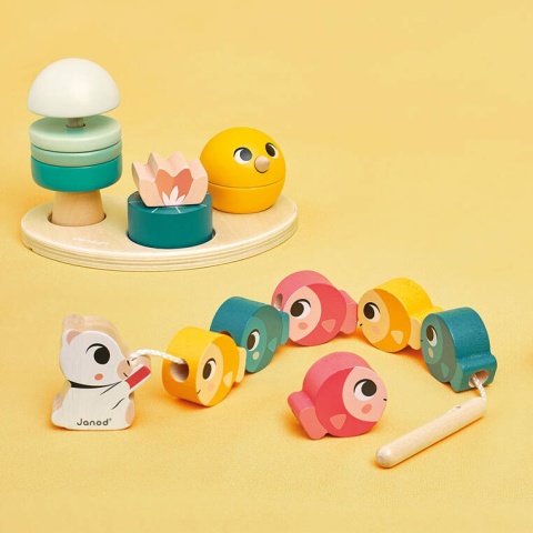Zabawki edukacyjne marki Janod wyróżniają niebanalne rozwiązania, wysoka jakość materiałów i precyzyjne wykonanie. Podczas beztroskiej zabawy rozwijają zmysły dziecka i wspomagają jego rozwój dzięki mnogości funkcji. Dzięki przypisaniu do odpowiedniej kategorii wiekowej, służą ćwiczeniu adekwatnych na danym etapie umiejętności, jak motoryka dłoni czy kojarzenie kształtów i kolorów.