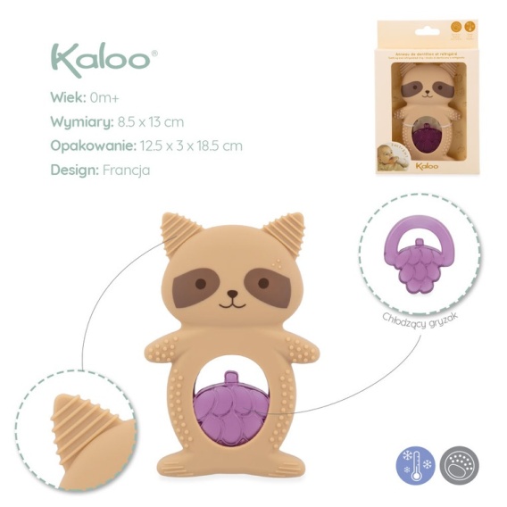 Gryzak chłodzący 2w1 Szop z kolekcji Grignoti francuskiej marki Kaloo to niezastąpiony zestaw, który przynosi natychmiastowe ukojenie podczas bolesnego ząbkowania. Składa się z miękkiego, silikonowego szopa o różnorodnych teksturach oraz wyjmowanego gryzaka w kształcie winogrona wypełnionego wodą, który po schłodzeniu w lodówce skutecznie łagodzi obrzęki i ból dziąseł.