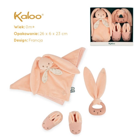 Kaloo Zestaw prezentowy 3 w 1 Królik (komforter + gryzak + buciki) brzoskwiniowy Lapinoo