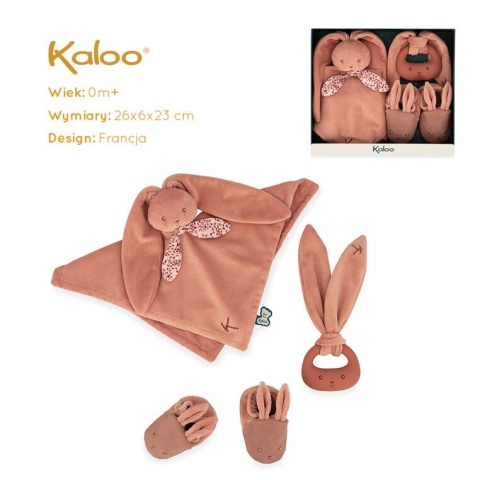 Kaloo Zestaw prezentowy 3 w 1 Królik (komforter + gryzak + buciki) ceglany kolekcja Lapinoo