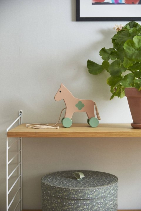 Drewniany konik do zabawy z kolekcji Carl Larsson ze sznurkiem o długości 60 cm.