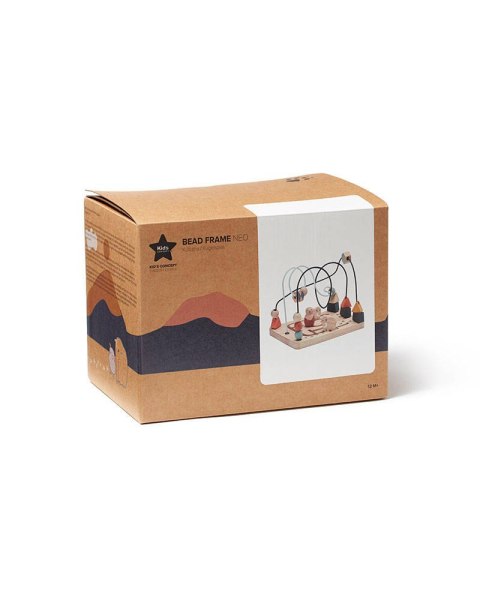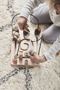 Drewniana ramka z koralikami pomoże doskonalić koordynację wzrokowo-ruchową małych dzieci.