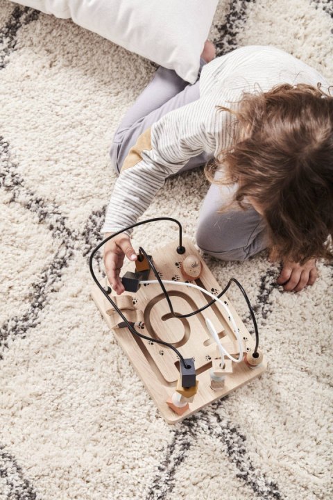 Poznaj różne kształty i kolory. Dwa mamuty, Leo i Neo, ptak Lisa i skoczek mułowy Otto mogą ślizgać się po ścieżce. Labirynt zdobią także elementy w kształcie wulkanów i różne kolorowe koraliki.