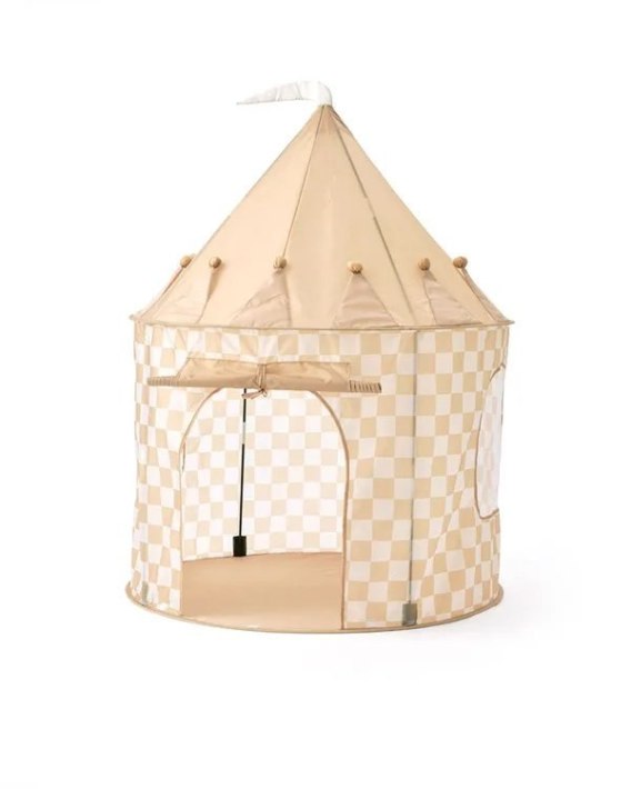 Namiot z poliestru z pobudzającymi wyobraźnię detalami, takimi jak gwiazdki i chorągiewki.