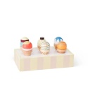 Zestaw sześciu drewnianych lodów w rożkach to doskonały dodatek do dziecięcej kuchni lub sklepiku. Każdy rożek ma inny wzór i kolor, co zachęca do opowiadania historii, rozwijania słownictwa i tworzenia własnych smaków.