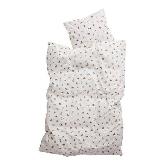 Mięciutka pościel dla dzieci z uroczym nadrukiem inspirowanym leśnymi zwierzętami, owadami, małymi kwiatami, liśćmi i grzybami będzie słodkim dodatkiem do sypialni Twojego dziecka.