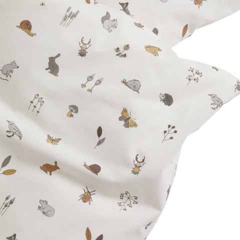 Mięciutka pościel dla dzieci z uroczym nadrukiem inspirowanym leśnymi zwierzętami, owadami, małymi kwiatami, liśćmi i grzybami będzie słodkim dodatkiem do sypialni Twojego dziecka.