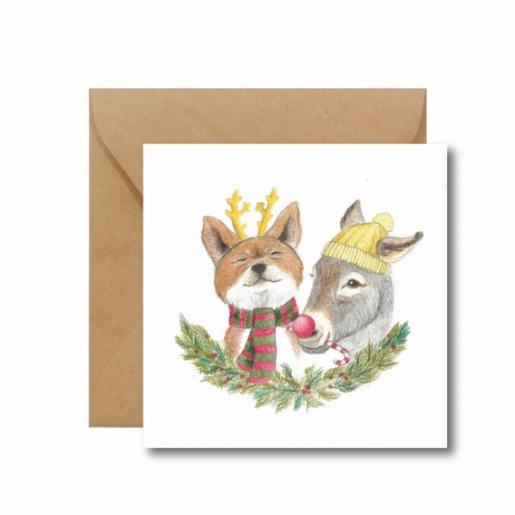 • LIS I OSIOŁ KARTKA ŚWIĄTECZNA - HI LITTLE