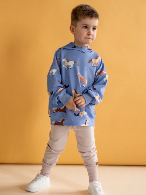 Bluza z kapturem w kolorze BabyBlue. Autorski nadruk w koniki.
