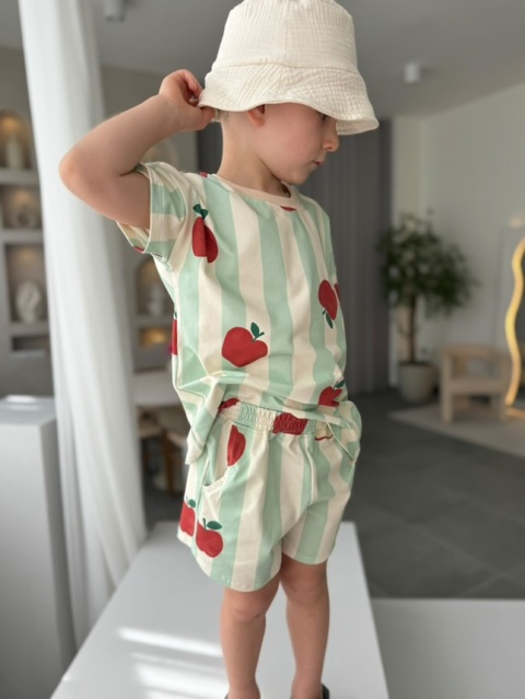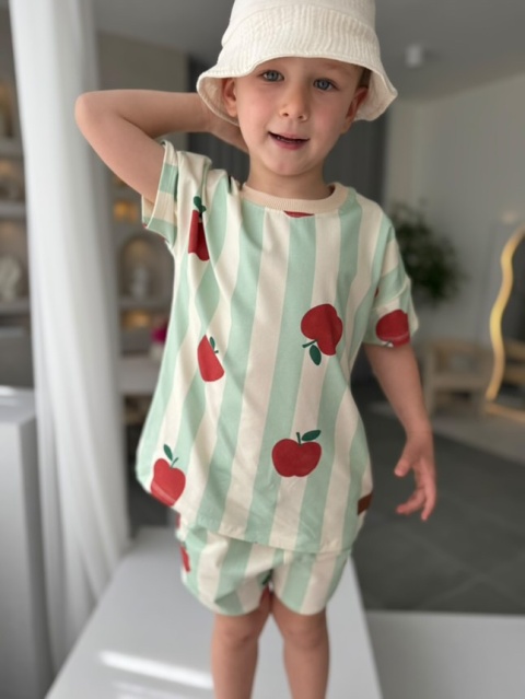 LaBambino Zestaw letni TSHIRT i spodenki JABŁKA ZIELEŃ kolekcja limitowana