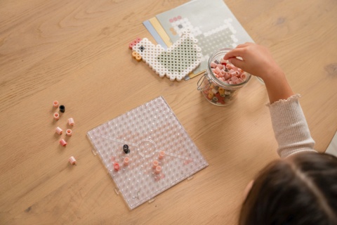 Koraliki do naprasowania Little Farm od Little Dutch to wspaniały zestaw kreatywny dla dzieci. Pokaż swoją kreatywność! Dzięki koralikom do naprasowania z motywami Little Farm możesz stworzyć najpiękniejsze figurki. Pszczoła, traktor, jabłko lub kurczak – wszystkie te motywy są możliwe do stworzenia dzięki zestawowi do rękodzieła. Zestaw wpłynie na rozwój kreatywności, motoryki małej i koordynacji ręka-oko. Świetnie sprawdzi się jako uzupełnienie pozostałych akcesoriów plastycznych od Little Dutch takich jak: fartuszki, kredki i kolorowanki.