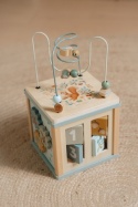 Kostka edukacyjna Forest Friends FSC od Little Dutch to wiele rozwojowych wyzwań dla Twojego dziecka. Ozdobiona wzorem z motywami kolekcji Forest Friends. Pośród aktywności edukacyjnych znajdują się: sorter z kształtami, obracające się koła zębate, ruchome elementy i spirale z koralikami. Dzięki każdej z tych aktywności dzieci rozwijają swoje umiejętności motoryczne i są zachęcane do wykorzystywania swojej kreatywności. Ta zabawka stymuluje ciekawość u dzieci i zapewnia wiele godzin wspaniałej zabawy. Stanowi świetny pomysł na prezent i doskonałe uzupełnienie dla pozostałych zabawek z kolekcji Forest Friends od Little Dutch.