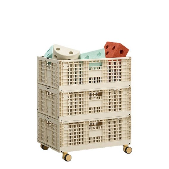 Duży zestaw do mobilnego przechowywania zabawek MODU. Zawiera 3 duże, składane skrzynki oraz 4 obrotowe kółka. Kółka 360° zapewniają płynny ruch, a ich gumowa powierzchnia chroni podłogę. Porządek i zabawa w jednym!