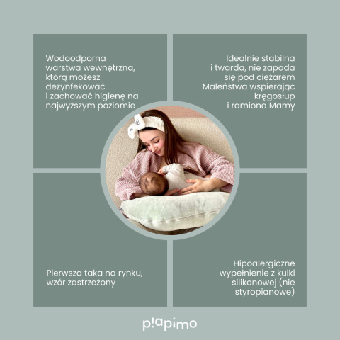 Poduszka do karmienia marki Piapimo testowana przez doświadczone położna laktacyjne. Została zaprojektowana z myślą o komforcie mam i higienie. Łączy estetykę, praktyczność, najwyższą jakość z wieloletnią wiedzą medyczną.