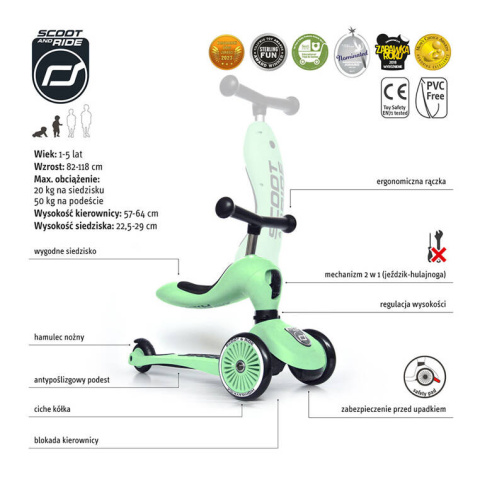 SCOOTANDRIDE Highwaykick 1 2w1 Jeździk i hulajnoga 1-5 lat Kiwi