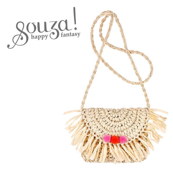 Souza! Torebka na ramię dla dzieci słomkowa naturalna z frędzlami i pomponami Akkelyn