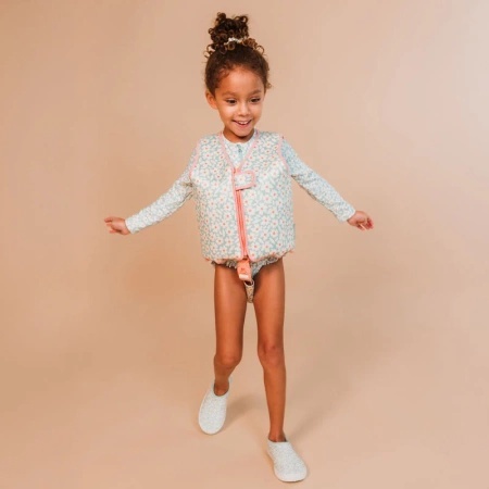 Kamizelka do nauki pływania dla dzieci Florish Green od The Swim Essentials. Idealnie sprawdzi się do nauki pływania i zapewnienia wyjątkowego bezpieczeństwa podczas zabawy w wodzie. Piankowa kamizelka zapinana jest na suwak na całej długości, zabezpieczona rzepem na wysokości klatki piersiowej oraz wyposażona w pas pomiędzy nogami, co zapobiega wyślizgnięciu się z niej dziecka. Dzięki użyciu pianki jako głównego materiału kamizelka jest wyjątkowo lekka. Przeznaczona jest dla dzieci o wadze 15 -18 kg. Kamizelka jest idealna do zabrania ze sobą na wakacje nad jezioro, czy nad morze, ale świetnie sprawdzi się również na basenie.