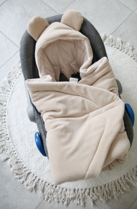 Otulacz do fotelika samochodowego dla niemowląt zapewnia bezpieczną jazdę samochodem. Otulacz ogrzewa maluszka i zapewnia mu ciepło, pozwalając jednocześnie na prawidłowe zapięcie pasów bezpieczeństwa w foteliku. Otulacz TINY STAR jest wygodny i praktyczny, ułatwia ubranie niemowlęcia do samochodu, zastępuje kombinezon. Jest ciepły i puszysty, zapinany na rzep by maluszek się nie rozkopał. Wykonany z naturalnych, oddychających materiałów , które zapewniają cyrkulację powietrza chroniąc dziecko przed przegrzaniem. Uszyty z tkanin 100% bawełnianych oraz miękkiego weluru, ocieplony antyalergiczną włókniną. Otulacz do fotelika posiada praktyczny kapturek.