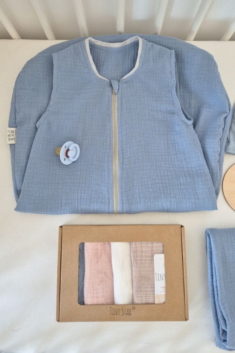 Tiny Star Śpiworek muślinowy - Blue - 1.0 tog / 0-6 M